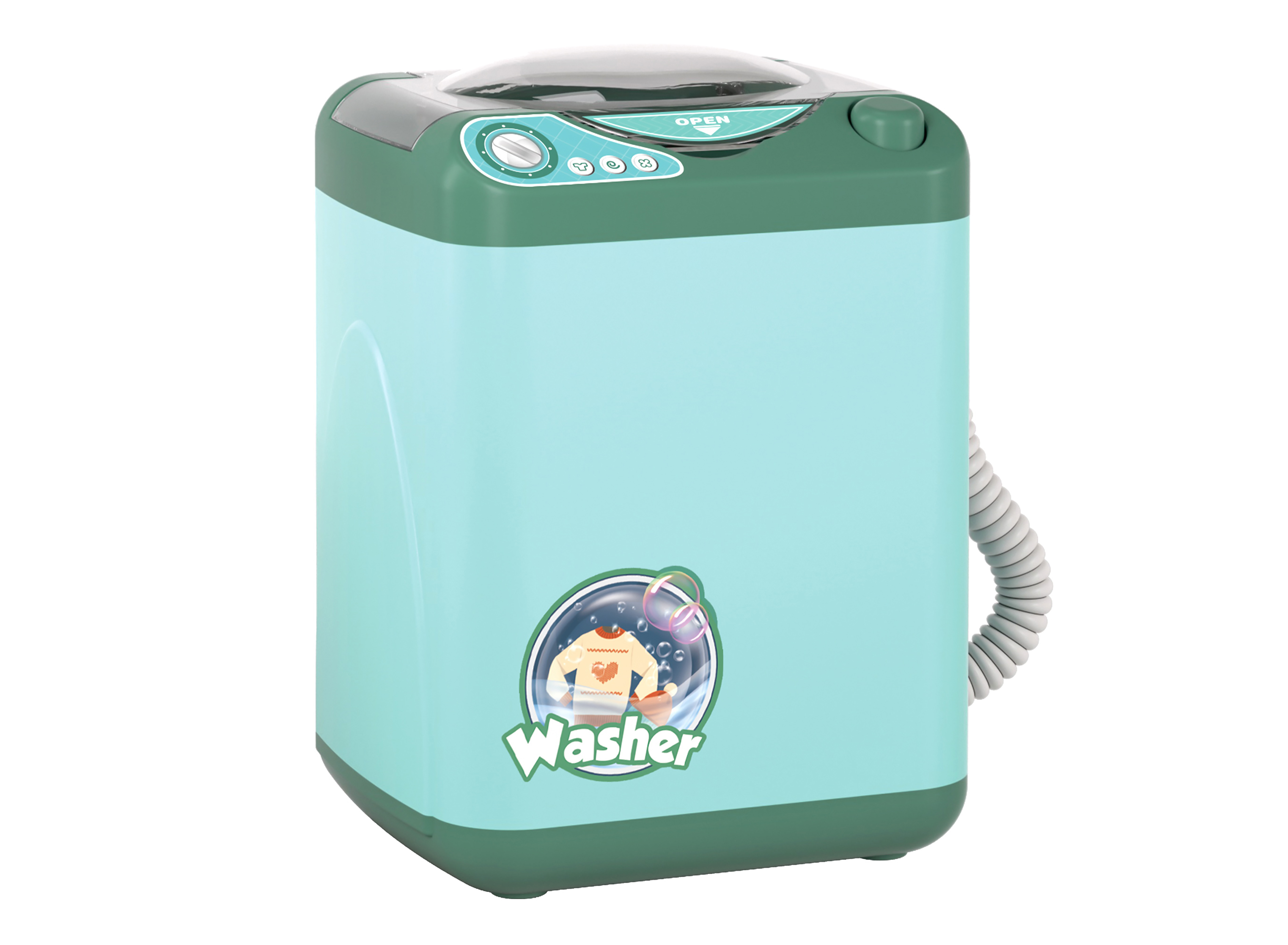 Pračka s efekty. Velikost 14 cm. Baterie 2xAA nejsou součástí balení. Přesné rozměry 10x9x14 cm.