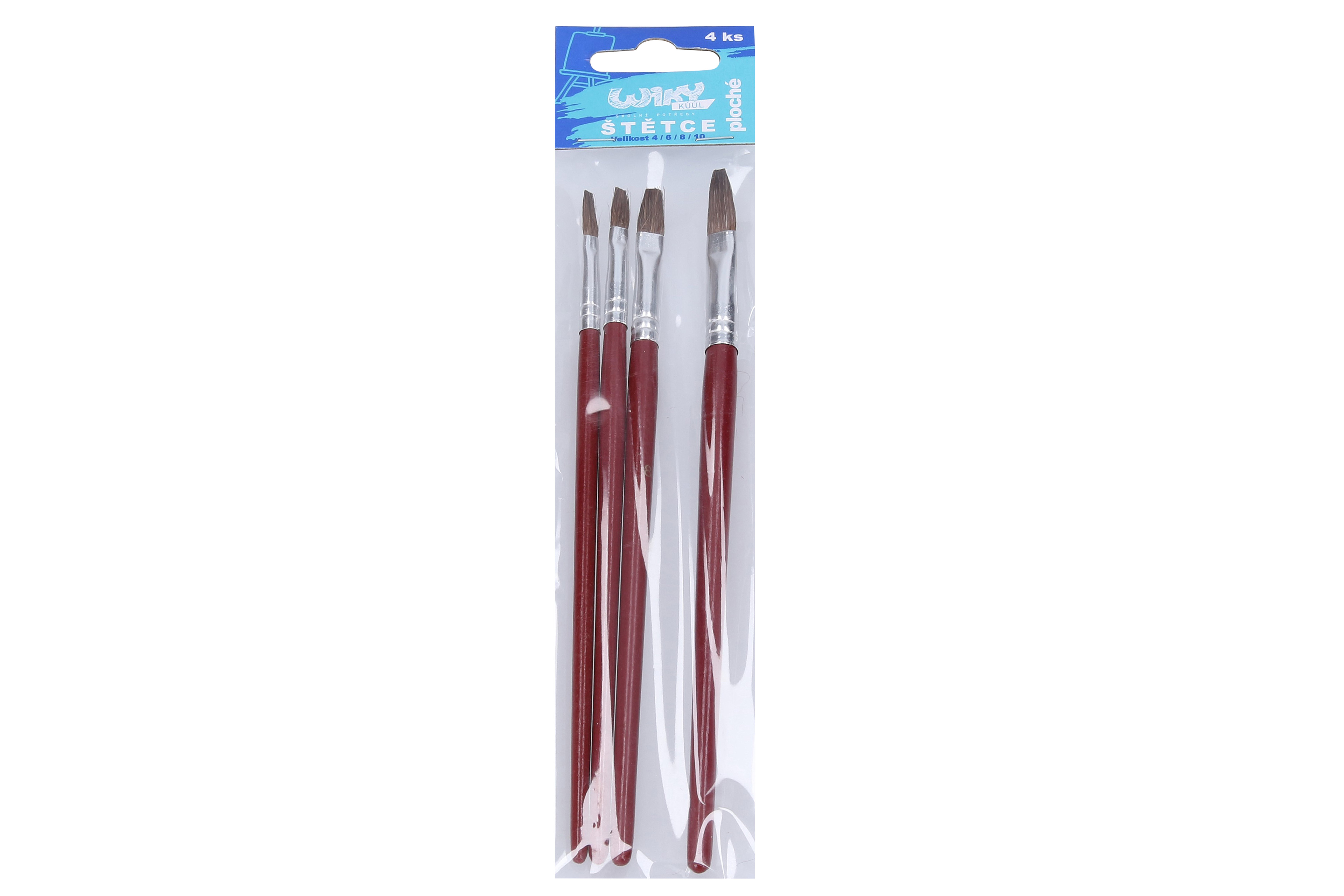 Klasické ploché štetce s dřevěnou násadou vhodné pro výtvarné a umělecké účely.