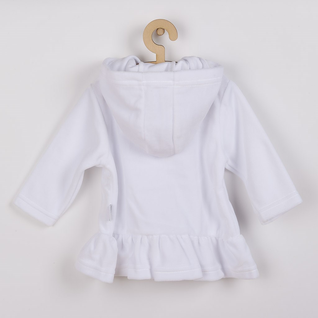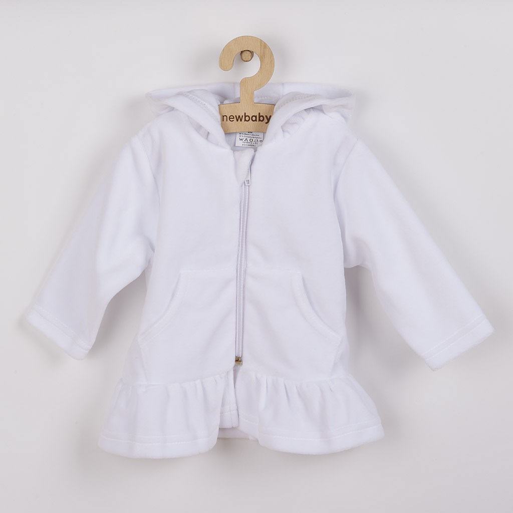 Stylová dětská semišková mikinka s kapucí české značky New Baby Baby. Mikinka má zapínání na zip po celé délce a je ukončena roztomilým volánkem. Mikinka je delší a tím skvěle nahradí tenčí kabátek, nebo svetřík. Pro New Baby je velmi důležitá spokojenost zákazníka a právě proto je mikinka vyrobena z velmi příjemného materiálu, ve kterém se bude vaše miminko cítit velmi pohodlně. Mikina v kombinaci s legínkami s naši nabídky poslouží jako krásný komplet na doma i procházky. Fantazie v oblékání nezná hranic a záleží jen na vás, jak mikinku dokážete doladit s oblečením značky New Baby. Složení: 80% bavlna, 20% polyester.
