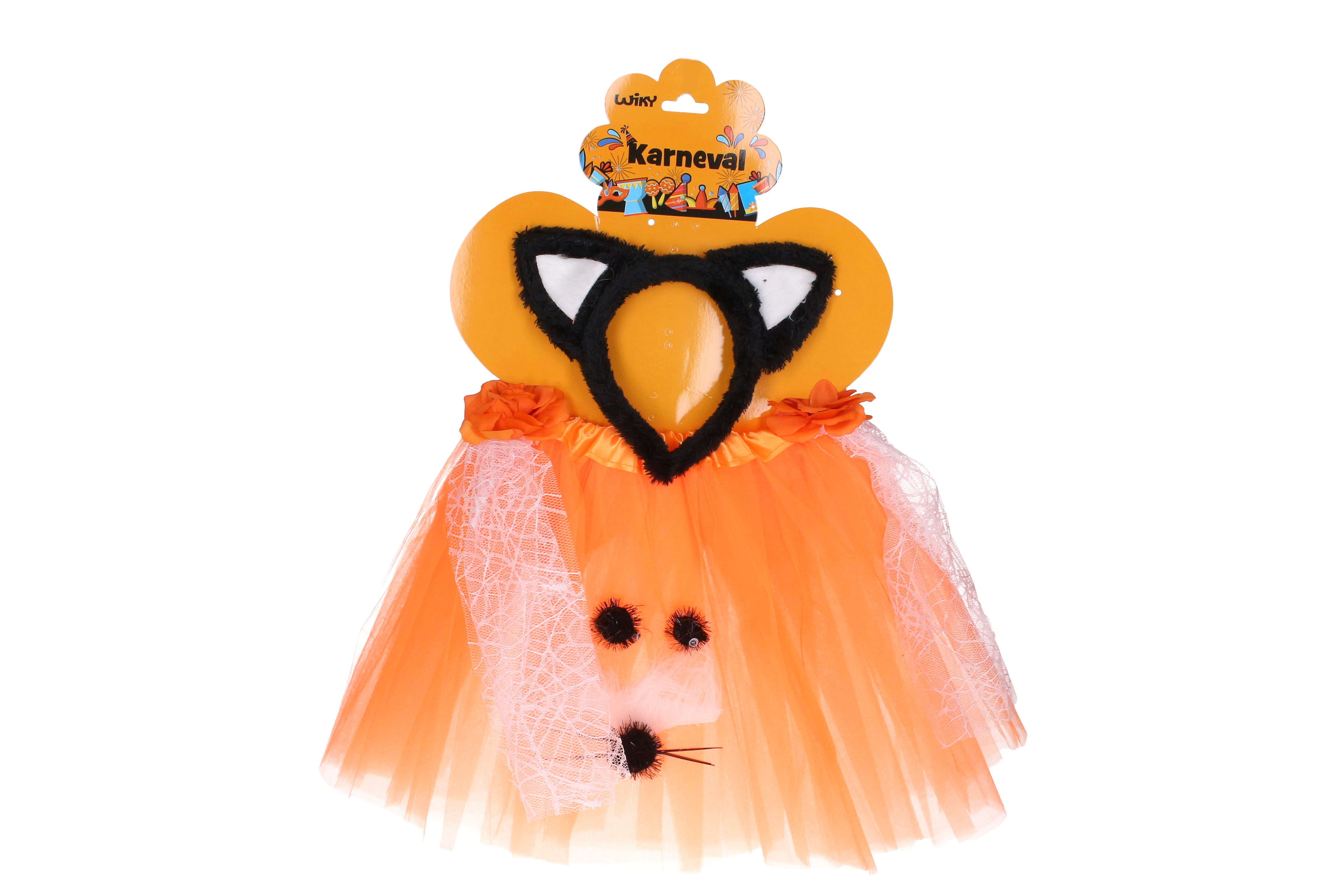 Set karneval liška. Balení obsahuje čelenku uši, sukni. Šíře sukně v pase je 25cm. Délka je 32 cm.