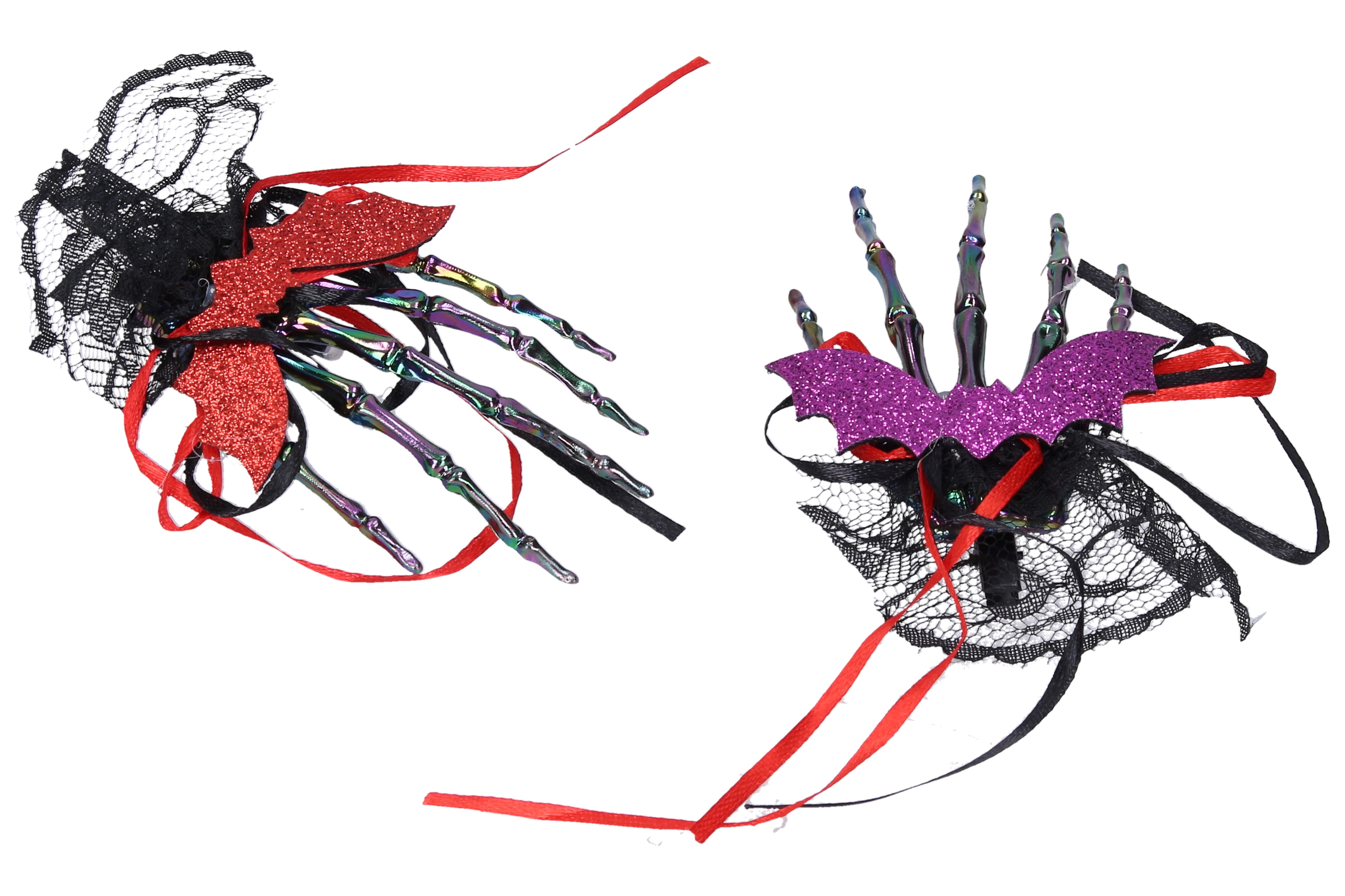 Karnevalový set spona do vlasů ve tvaru ruky kostry.