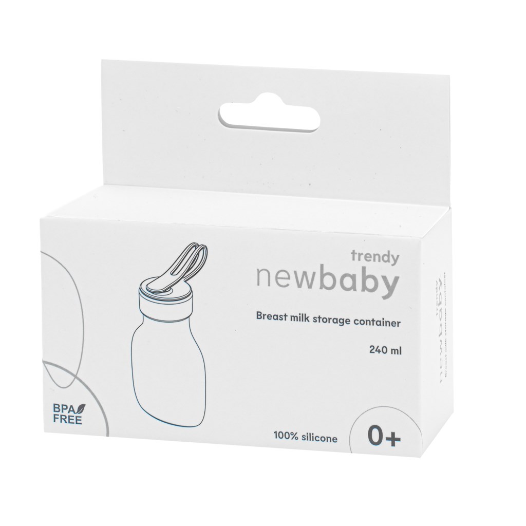 Silikonski rezervoar za materino mleko blagovne znamke New Baby iz serije Trendy združuje moderni minimalistični dizajn s praktično uporabo za vsakodnevne potrebe mamic.