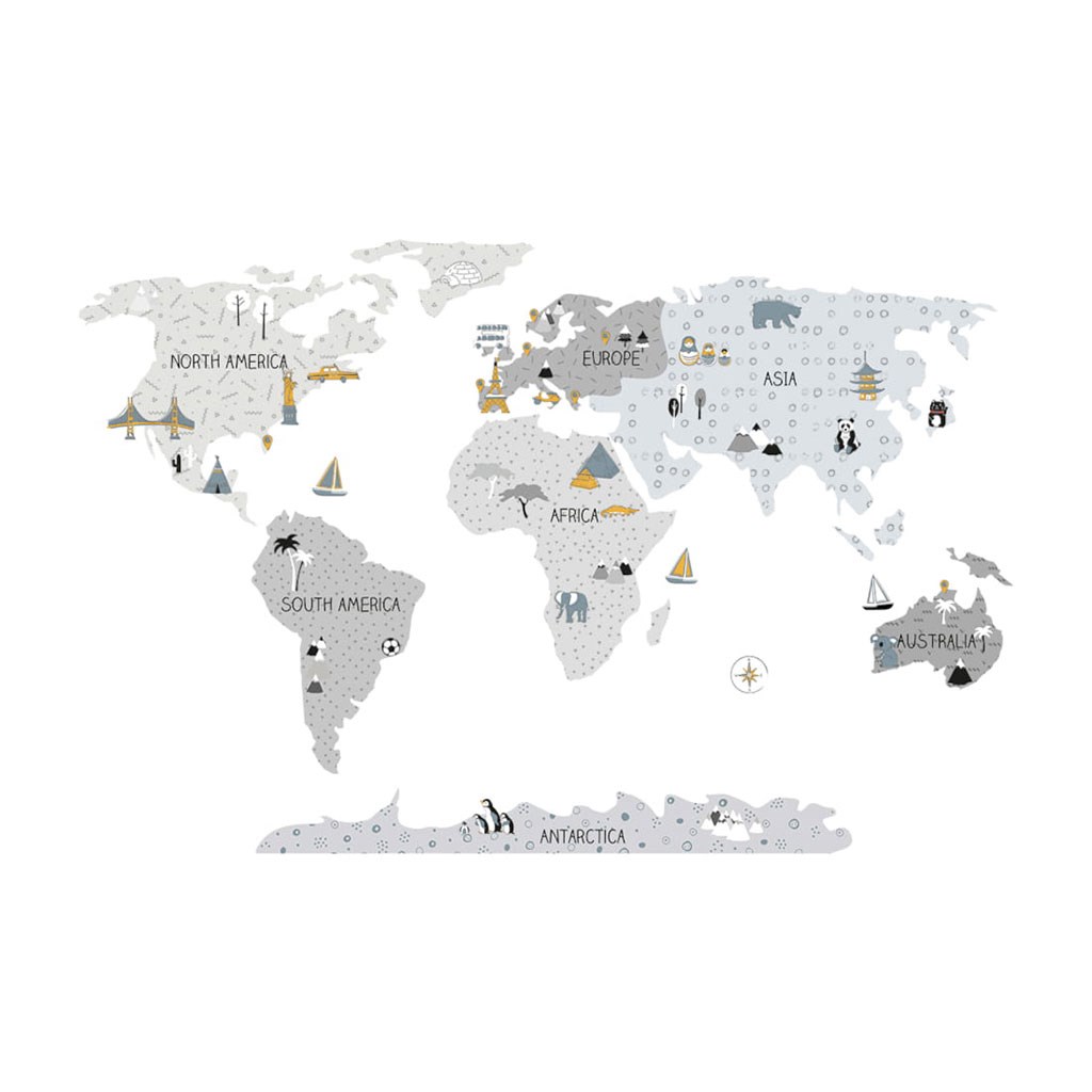 Lepa nalepka na steno Zemlje M. Sive zemljevide sveta so izdelki najvišje kakovosti, izdelani z največjo skrbnostjo in pozornostjo do detajlov, ohranjeni v umirjenih skandinavskih barvah, ki se popolnoma prilegajo otroškemu prostoru. Zemljevide niso le edinstvena dekoracija, temveč tudi fenomenalen način učenja skozi igro. Otroci spoznavajo celine, oceane in svetovne strani, prav tako pa znamenitosti in zanimivosti določenega področja ali države. Vsak element zemljvida je natančno izrezan iz obrisov in prilepljen posamezno, kar olajša aplikacijo, zlasti pri večjih prostorih. Velikost nalepke se meri po njeni aplikaciji na steno, pri čemer so celine med seboj v ustrezni razdalji. Nalepka je zaščitena s posebnim mat laminatom, ki jo varuje pred praskami pri vsakodnevni uporabi in hkrati olajša lepljenje – folija je debelejša in lažje se prenaša na steno. Če iščete popoln način, kako oživiti otroško sobo, so naše nalepke na steno prava izbira. Naročite jih še danes in razveselite svoje dete.