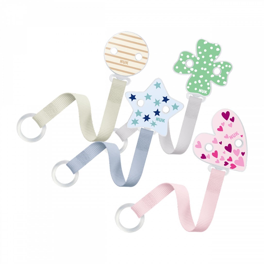 Veselá, barevná stužka na dudlík NUK s flexibilním kroužkem, je skvělým pomocníkem pro miminka i rodiče. Nenahraditelná zvlášť během cestování a procházek. Díky sponě dudlík nespadne na zem a nezašpiní se a neztratí se. Má snadné použití a je vyrobena tak, aby se dala připnout k dětskému oblečení. Pestré barvy a veselé obrázky dítě zaujmou. Určeno pro děti od prvních dnů života. Stužka je vhodná i na dudlíky bez kroužku díky natahovacímu silikonovému kroužku. Systém klipu je bez ostrých hran pro otevírání a zavírání jednou rukou.