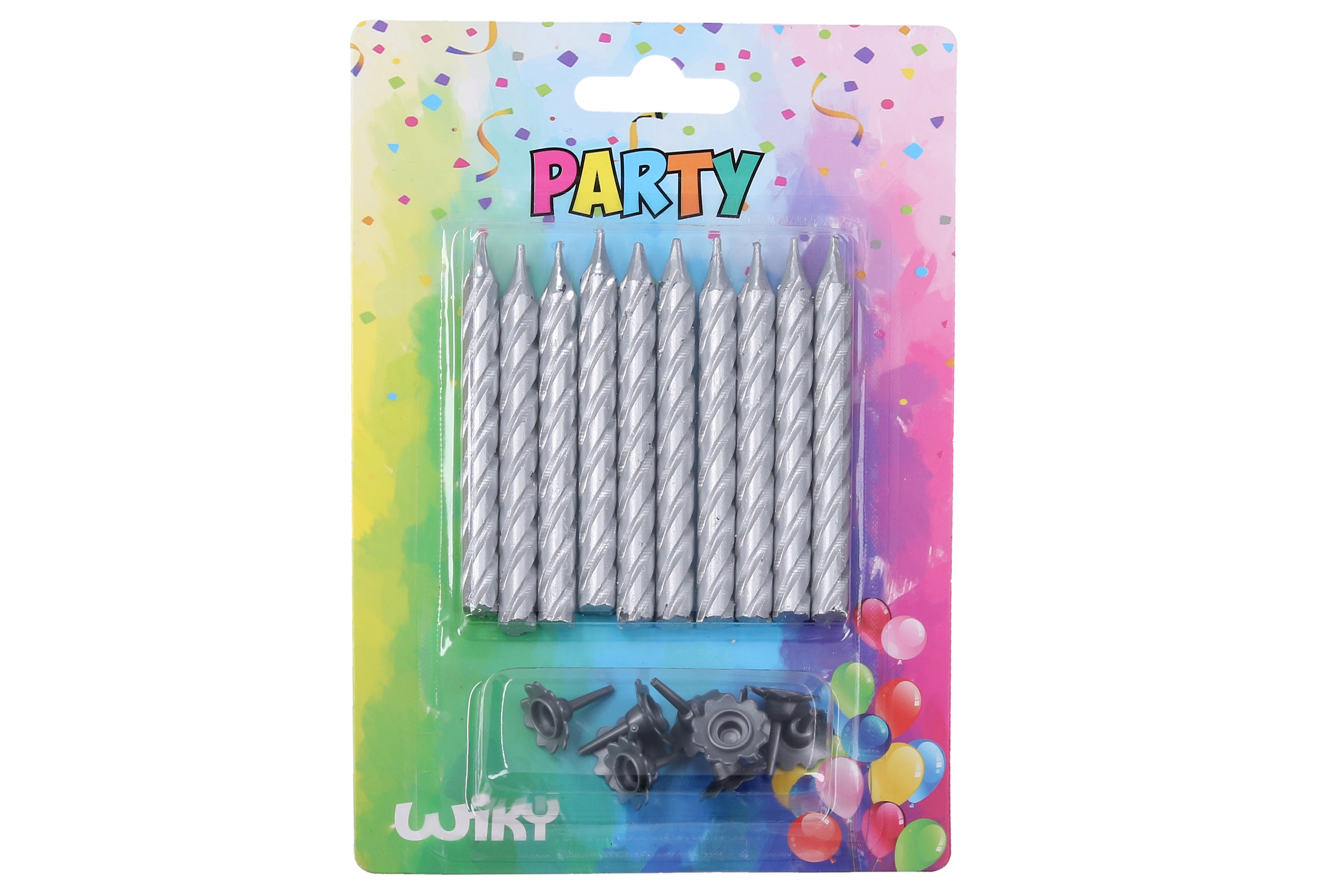 Svíčky 10ks + stojánky 10ks stříbrná barva.