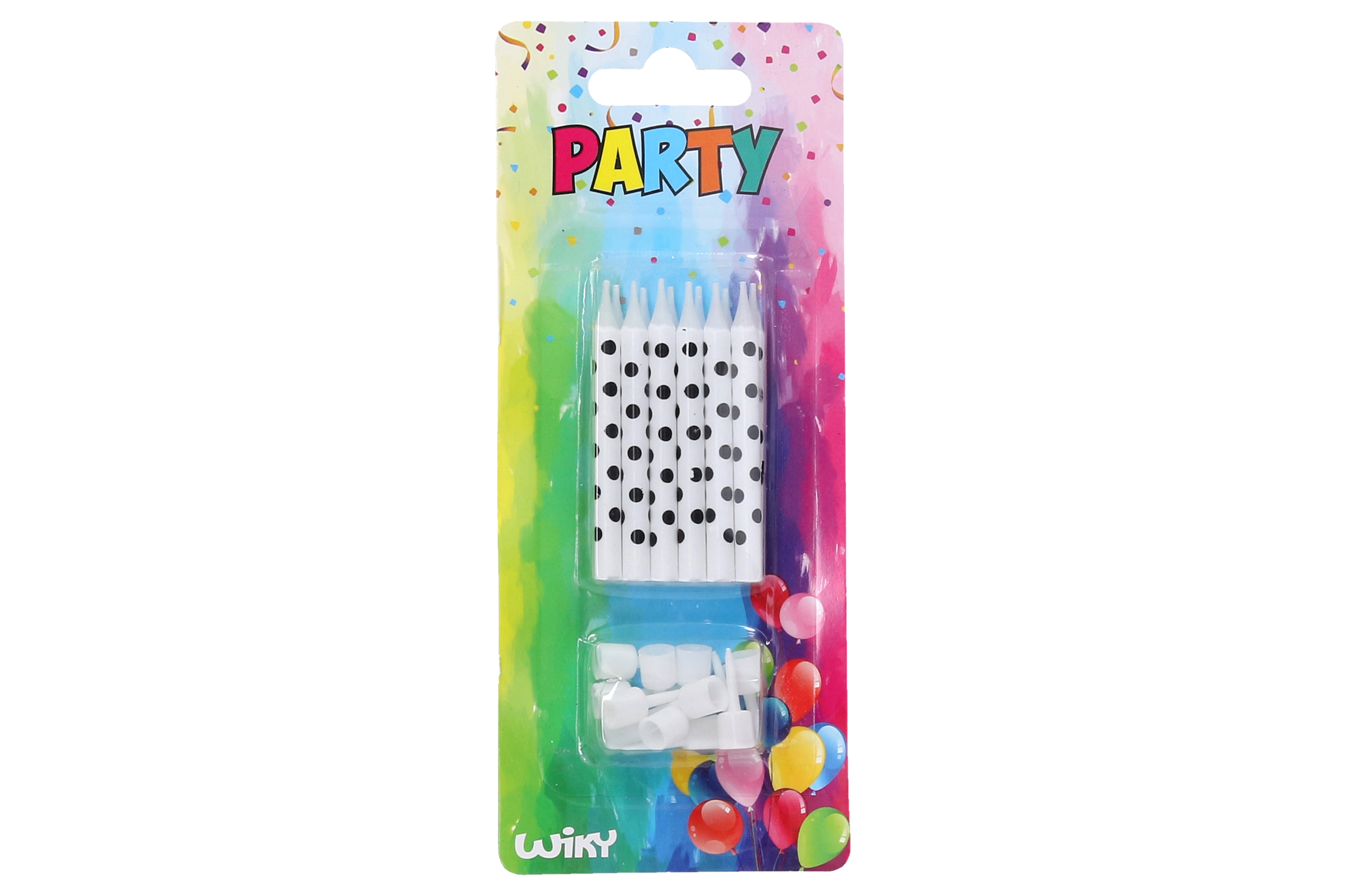 Svíčky 12ks + stojánky 12ks černé tečky. Velikost jedné svíčky: 6 cm