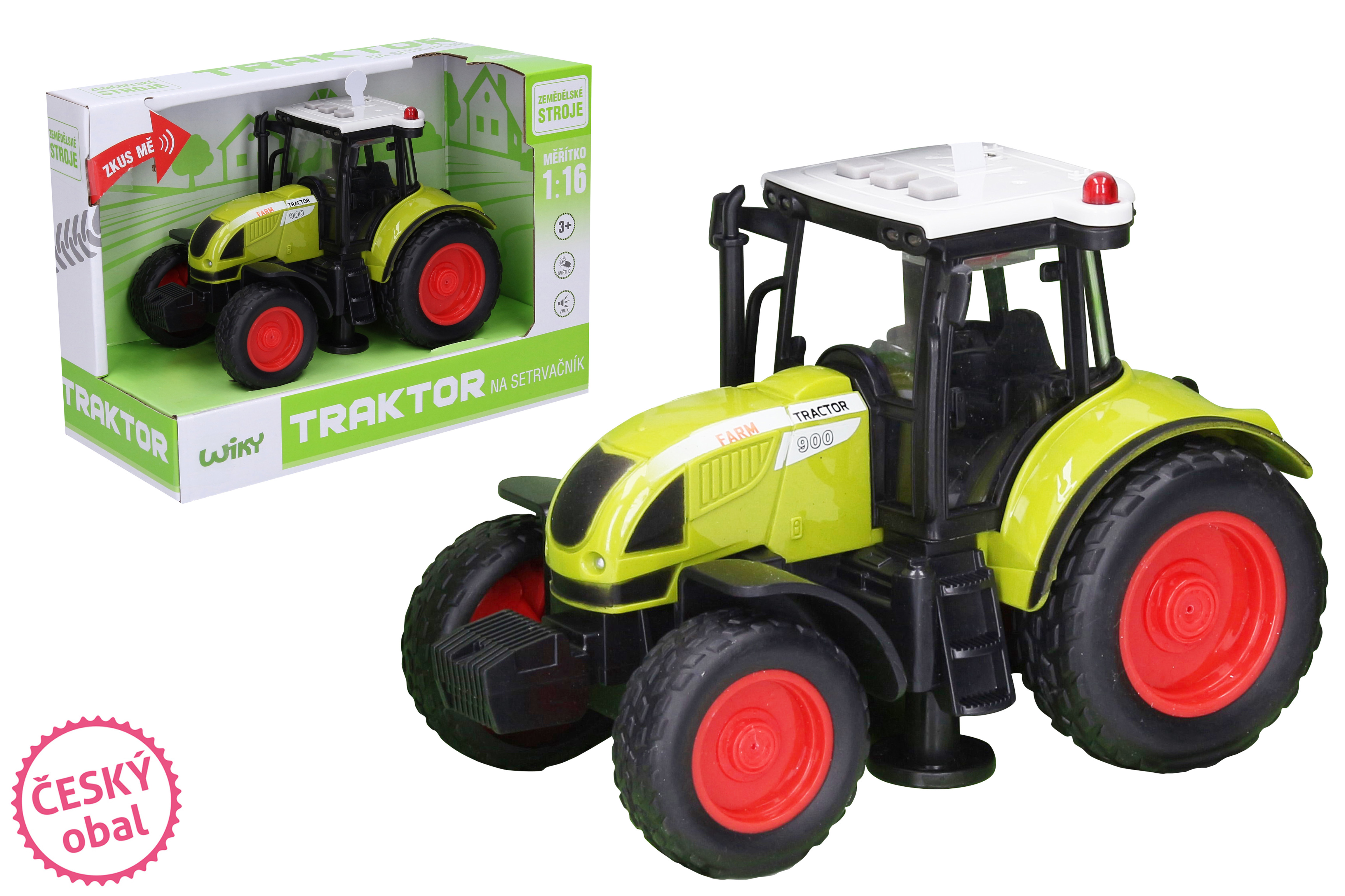Traktor na setrvačník. Vydává světelné a zvukové efekty. Velikost 18 cm.