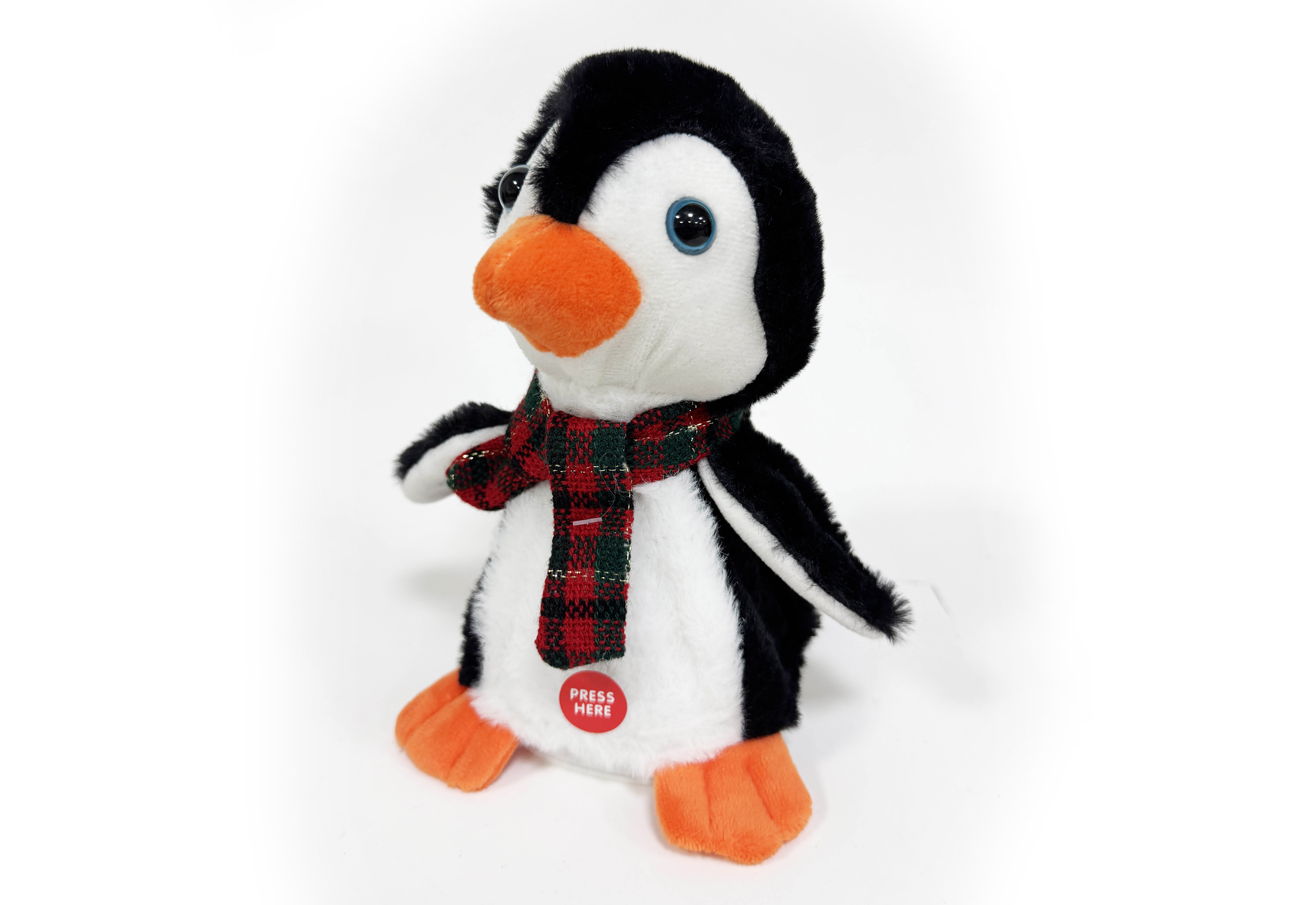 Tučňák opakuje co říkáš. Zvukové efekty, opakuje, tančí a zpívá. Rozměry 13x11x19 cm. Tlačítko na bříšku. 3xAAA baterie, součástí balení. Přepínač, OFF/TRY ME/PLAY.