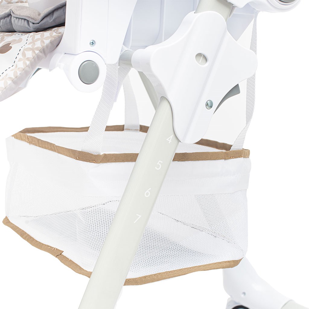 Jedilnična stolica Baby Mix, to je spojitev modernega dizajna in praktične uporabe. Narejena je iz kakovostnih materialov, ki otroku zagotavljajo dovolj udobja in varnosti. Zagotovo boste cenili visoko kakovost prevleke, ki se enostavno čisti. Del jedilnice je dvojna jedilna miza, praktična košara za drobnarije, novorojenčkova blazina. Višino stolice lahko nastavite v sedmih položajih, naslon za hrbet lahko nastavite v treh položajih. Opora za noge je opremljena z nastavljanjem v dveh položajih. Osnova pod nogami lahko postavite v tri položaje. Varnostni pasovi zagotavljajo maksimalno varnost med uporabo. Kolesa so zelo praktična, ko potrebujete premakniti stolico. Nahajajo se na zadnji strani. Stolica je praktičen pomočnik pri skrbi za dojenčke in olajša hranjenje vašega malčka.