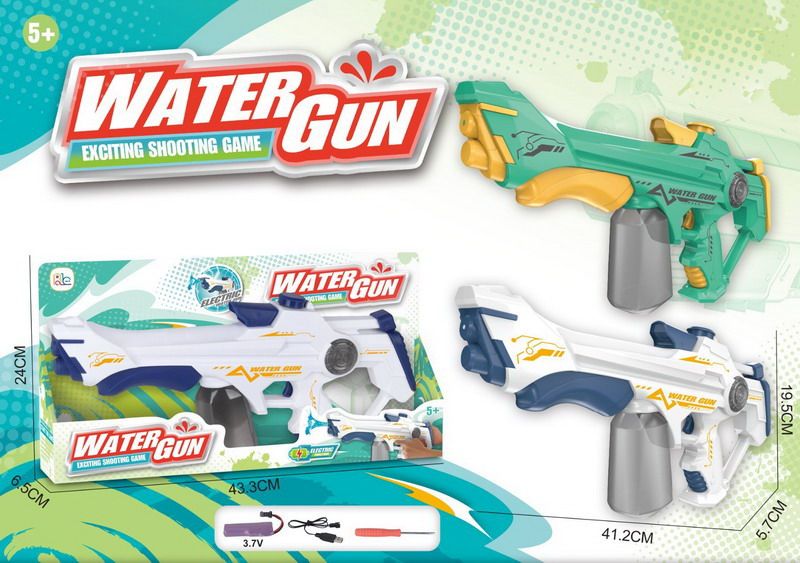 Vodní puška elektrická. Přesné rozměry pušky 41,2x19,5x5,7 cm. 2 varianty - zelená, bílá. Bateriový pack 1x3.7V 500mA, součástí balení.