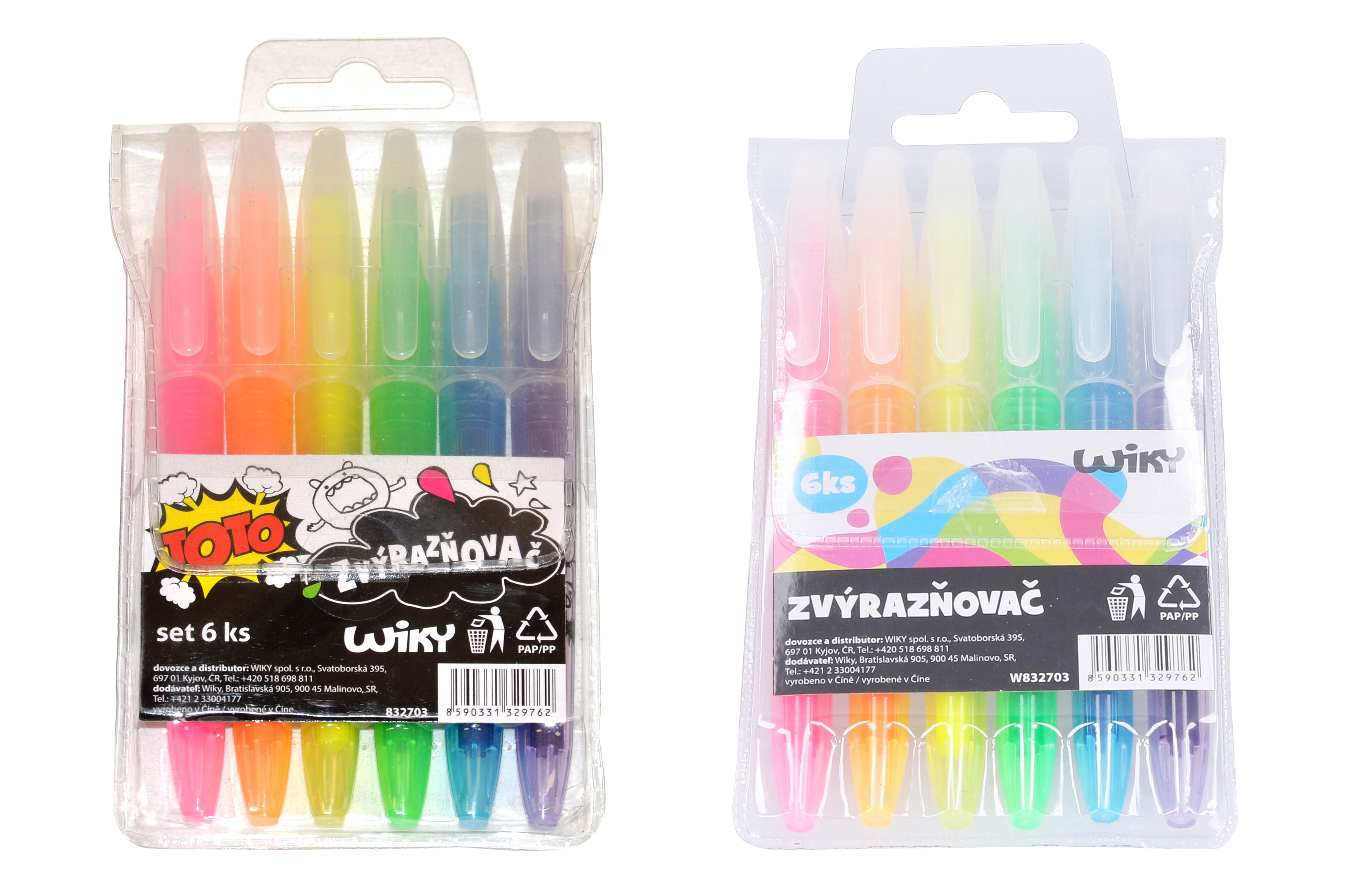 Balení obsahuje 6 barev - růžová, oranžová, žlutá, zelená, modrá, fialová.